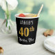 Este elegante y ornamentado diseño de tazas de papel con temática de cumpleaños presenta un nombre editable y el mensaje "Fiesta de cumpleaños número 40". El gran número "40th" tiene un patrón de color falso/imitación de inspiración dorada, y las palabras "Birthday Party" están en un texto opulento de estilo de escritura. El fondo es negro de color de forma predeterminada (aunque se puede personalizar). Elegantes y lujosas tazas de papel como esta podrían ser usadas en una celebración de cumpleaños que se lleva a cabo para celebrar el cuadragésimo cumpleaños de alguien. [~Z0000567]