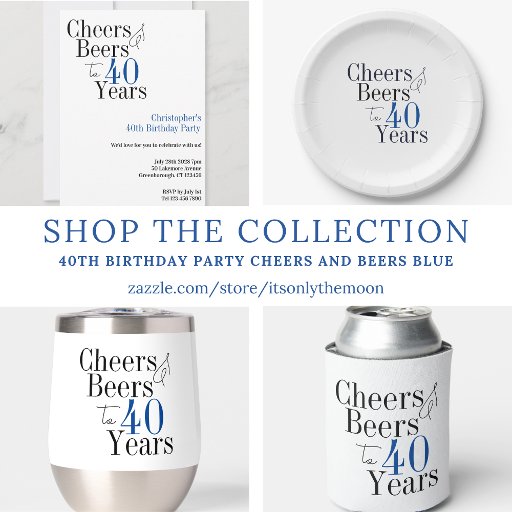 Este es un fresco y moderno, 40 cumpleaños, Cheers y Beers a 40 años de diseño. Es un diseño sencillo y mínimo, en tipografía clásica azul y negra. Perfecto para una celebración de 40 años de fiesta fresca y divertida. Este diseño es totalmente personalizable, simplemente utilice la personalización de este botón para cambiar la edad, o el resto del texto, o utilice la herramienta de edición para cambiar el color o el tipo de letra. Si necesita ayuda con la personalización, productos coincidentes o para un diseño personalizado, póngase en contacto conmigo a través de zazzle chat o correo electrónico: ursuladawnmoon@gmail.com