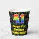 Este alegre y alegre diseño de taza de papel de cumpleaños con temática musical presenta un gran número "41" con un patrón inspirado en el gradiente del espectro arcoiris. También incluye el mensaje "Feliz cumpleaños número 41", y un nombre personalizado. El fondo tiene un patrón vibrante y colorido con notas musicales y símbolos de varios colores y tamaños. Coloridas y vibrantes tazas de papel como esta pueden ser divertidas de tener en una celebración de cumpleaños que se lleva a cabo para celebrar el cumpleaños 41 de alguien. [~Z0000541]