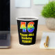 Este divertido y colorido diseño de taza de papel con temática de cumpleaños presenta un gran número "46" con un patrón inspirado en el gradiente del espectro arcoiris. También incluye el mensaje "Feliz cumpleaños número 46", y un nombre editable. El fondo es negro de color. Coloridas y vibrantes tazas de papel como esta pueden ser divertidas de tener en una fiesta de cumpleaños/celebración que se lleva a cabo en celebración del 46º cumpleaños de alguien. [~Z0000537]