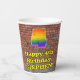 Este vibrante y emocionante arte urbano callejero y el diseño de la taza de papel inspirado en el graffiti de cumpleaños presenta un gran número "4" con un colorido patrón inspirado en el gradiente del espectro arcoiris, junto con el mensaje "Feliz cuarto cumpleaños", y un nombre de personalizable. El fondo está decorado con un patrón de pared de ladrillo. Vibrantes y coloridas tazas de papel como esta pueden ser divertidas de tener en una celebración/fiesta de cumpleaños que se lleva a cabo en celebración del cuarto cumpleaños de alguien. [~Z0000543]
