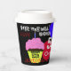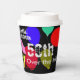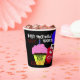 Feliz 50.º Fiesta del hito de cumpleaños. Personaliza el nombre en el relleno de tarta y cualquier edad. El nombre tiene una fuente de ojos rebotantes divertida. Escriba la edad y aparecerá automáticamente en tres lugares en el frente y en el trasero. Bizcocho de helado rosa con espolvorines y una vela azul y blanca en un envoltorio verde amarillo plisado. Globos voladores con fondo rojo, azul, verde, amarillo contra negro. Obra de arte original de TamiraZDesigns.