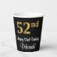Este elegante, sofisticado y lujoso diseño de tazas de papel con temática de cumpleaños presenta un gran número ordinal "52nd" con un aspecto imitación/falso inspirado en el oro, junto con el mensaje de bienvenida de cumpleaños "Feliz cumpleaños número 52" y un nombre de personalizable con un tipo de letra estilo script. El fondo es negro de color. Sofisticadas tazas de papel como esta pueden ser divertidas de usar en una fiesta de cumpleaños en honor al cumpleaños 52 de alguien. [~Z0000538]
