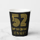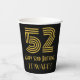 Este inspirado y vintage diseño de taza de papel de cumpleaños de Roaring Twenties presenta un gran diseño inspirado en arte deco con el número "52", además del mensaje de bienvenida de cumpleaños "Feliz cumpleaños número 52" y un nombre editable. El fondo es negro de color. Roaring Twenties inspiró vasos de papel como este para ser usados cuando se organiza una fiesta de cumpleaños para alguien en celebración de su cumpleaños número 52. [~Z0000546]