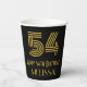 Este inspirado y vintage diseño de tazas de papel con temática de cumpleaños de los años 2000 presenta un gran estilo inspirado en el arte deco número "54", además del mensaje de bienvenida de cumpleaños "Feliz cumpleaños número 54" y un nombre de personalizable. También tiene un fondo de color negro. Se pueden usar vasos de papel como este en un fiesta que se celebra el cumpleaños 54 de alguien. [~Z0000546]
