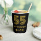 Este estilo vintage y el inspirado diseño de la taza de papel temática inspirado en los años 2010 de Roaring presentan un gran estilo Art Deco inspirado en el número "55", además del mensaje de bienvenida de cumpleaños "Feliz cumpleaños número 55" y un nombre personalizado. El fondo es negro de color. Vintage luce tazas de papel con tema de cumpleaños como esta podrían ser usadas en un fiesta que celebra los cincuenta y cinco años de alguien. [~Z0000546]