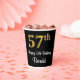 Este elegante, lujoso y elegante diseño de tazas de papel con temática de cumpleaños presenta un gran número ordinal "57th" que tiene un patrón de gradiente inspirado en el oro falso/imitación, junto con el mensaje de bienvenida de cumpleaños "Happy 57th Birthday" y un nombre editable con un tipo de letra estilo script. El fondo es negro de color. Elegantes tazas de papel como esta pueden ser usadas cuando se aloja a un fiesta para alguien en celebración de su cumpleaños 57. [~Z0000538]