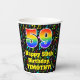Este colorido y emocionante diseño de taza de papel de cumpleaños con temática musical presenta un gran número de "59" con un patrón inspirado en el gradiente del espectro arcoiris. También incluye el mensaje "Feliz cumpleaños número 59", y un nombre de personalizable. El fondo presenta un patrón multicolor de varias notas musicales y símbolos con una variedad de colores y tamaños. Coloridas y vibrantes tazas de papel como esta pueden ser divertidas de usar en una fiesta de cumpleaños que se lleva a cabo en celebración del cumpleaños 59 de alguien. [~Z0000541]