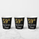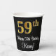 Este elegante, sofisticado y elegante diseño de tazas de papel con temática de cumpleaños presenta un gran número ordinal "59th" con un aspecto falso/imitación de inspiración dorada, junto con el mensaje de bienvenida de cumpleaños "Happy 59th Birthday" y un nombre personalizado con un tipo de letra estilo script. El fondo es negro de color. Se pueden usar vasos de papel como este cuando se celebra el cumpleaños 59 de alguien. [~Z0000538]