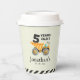 Diseño de Vasos para Fista de niño con una Hermosa Tematica de construccion con la imagen de un camion de construccion en acuarela en color amarillo cargando el numero 5!.. Se puede personalizar con el nombre de tu bebe.