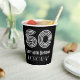 Este inspirado y vintage diseño de tazas de papel temático estilo años 2000 presenta un gran estilo inspirado en el arte deco, el número "60", el mensaje de bienvenida de cumpleaños "Feliz cumpleaños número 60" y un nombre personalizado. El fondo es negro de color. Las tazas de papel temáticas de cumpleaños como esta pueden ser usadas en una fiesta de cumpleaños que celebra el 60 cumpleaños de alguien. [~Z0000542]