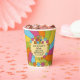 Perfect for music lovers turning 80! This retro 1960s music paper cup blends bold colors, classic and groovy vibes. Featuring an “I Love 60s Music” design, with colorful flowers and waves. A highlight party accessory for an 80th birthday. This cup includes a fully editable design you can easily personalize.