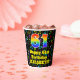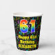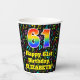 Este alegre y emocionante diseño de taza de papel con temas musicales de cumpleaños presenta un gran número "61" con un patrón inspirado en el gradiente del espectro arcoiris, junto con el mensaje "Feliz cumpleaños número 61", y un nombre personalizado. El fondo presenta un patrón colorido de varias notas musicales y símbolos con una variedad de tamaños y colores. Vibrantes y coloridas tazas de papel como esta pueden ser divertidas de tener en una fiesta de cumpleaños que se lleva a cabo para honrar el 61 cumpleaños de alguien. [~Z0000541]
