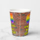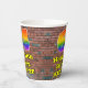 Este vibrante y divertido arte urbano callejero y el diseño de la taza de papel inspirado en el graffiti de cumpleaños presenta un gran número "64" con un colorido patrón inspirado en el gradiente del espectro arcoiris. También incluye el mensaje "Feliz cumpleaños número 64", y un nombre personalizado. El fondo está decorado con un patrón de pared de ladrillo. Coloridas y vibrantes tazas de papel como esta pueden ser divertidas de tener en una fiesta de cumpleaños que se lleva a cabo en celebración del 64 cumpleaños de alguien. [~Z0000543]