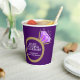 Ametista y anillo de oro moderno hecho divertido y tazas de papel fiesta de aniversario boda. Personaliza estas tazas de aniversario de boda con tu propio nombre y datos divertidos sobre tu pareja. También están disponibles otros elementos coincidentes. © Diseño original del anillo gráfico de Sarah Trett para www.mylittleeden.com y www.mylittleedenweddings.com en Zazzle.