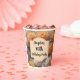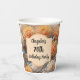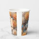 Celebra cualquier edad con una preciosa taza de papel de personalizable. Magníficos crisantemos rosas y naranjas con mariposas azules y suntuosas zonas verdes. Un diseño femenino elegante pero bonito.