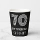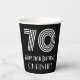 Este estilo vintage y el inspirado diseño de la copa de papel con temática de cumpleaños Roaring Twenties presentan un gran estilo inspirado en el art deco número "70", junto con el mensaje de bienvenida de cumpleaños "Happy 70th Birthday" y un nombre editable. El fondo es negro de color. Roaring Twenties inspiró tazas de papel temáticas de cumpleaños como esta que podrían ser usadas en un fiesta para alguien que está celebrando su septuagésimo cumpleaños. [~Z0000542]