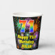 Este alegre y colorido diseño de taza de papel temático de cumpleaños presenta un gran número "71" con un patrón inspirado en el gradiente del espectro arcoiris, junto con el mensaje "Feliz cumpleaños número 71", y un nombre de personalizable. El fondo presenta un patrón emocionante y colorido inspirado en el aspecto de los fuegos artificiales de celebración que reventan. Coloridas y vibrantes tazas de papel como esta pueden ser divertidas de usar en una celebración/fiesta de cumpleaños que se celebra para honrar el cumpleaños 71 de alguien. [~Z0000539]