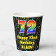 Este colorido y emocionante diseño de taza de papel de cumpleaños con temática musical presenta un gran número de "72" con un patrón inspirado en el gradiente del espectro arcoiris. También incluye el mensaje "Feliz cumpleaños número 72", y un nombre personalizado. El fondo presenta un patrón multicolor con notas musicales y símbolos de varios tamaños y colores. Vibrantes y coloridas tazas de papel como esta pueden ser divertidas de tener en una celebración de cumpleaños que se lleva a cabo para honrar el 72 cumpleaños de alguien. [~Z0000541]