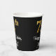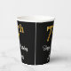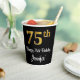 Este sofisticado, elegante y elegante diseño de tazas de papel con temática de cumpleaños presenta un gran número ordinal "75th" con un aspecto de imitación/faux de oro, junto con el mensaje de bienvenida de cumpleaños "Happy 75th Birthday" y un nombre personalizado con un tipo de letra estilo script. El fondo es negro de color. Elegantes tazas de papel con temas de cumpleaños como esta podrían ser usadas en un fiesta que celebra el cumpleaños 75 de alguien. [~Z0000538]