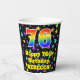 Este colorido y divertido diseño de taza de papel de cumpleaños presenta un gran número "76" con un patrón inspirado en el gradiente del espectro arcoiris. También incluye el mensaje "Feliz cumpleaños número 76", y un nombre personalizado. El fondo presenta un patrón multicolor inspirado en un campo de estrellas. Vibrantes y coloridas tazas de papel como esta pueden ser divertidas de tener en una celebración de cumpleaños que se lleva a cabo para celebrar el cumpleaños 76 de alguien. [~Z0000540]
