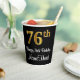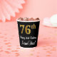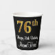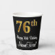Este elegante, sofisticado y elegante diseño de tazas de papel con temática de cumpleaños presenta un gran número ordinal "76th" con un aspecto falso/imitación de oro, además del mensaje de bienvenida de cumpleaños "Feliz 76th Birthday", y un nombre personalizado con un tipo de letra estilo script. También tiene un fondo de color negro. Las tazas de papel temáticas de cumpleaños como esta pueden ser divertidas de usar en un fiesta que está siendo retenido por alguien que está celebrando su cumpleaños 76. [~Z0000538]