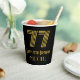 El diseño de esta copa de papel inspirado en el estilo de los años 20-30 y de estilo vintage presenta un gran estilo Art Déco inspirado en el número "77", además del mensaje de bienvenida de cumpleaños "Feliz cumpleaños 77" y un nombre editable. El fondo es negro de color. Las tazas de papel temáticas de cumpleaños como esta pueden ser usadas en una fiesta de cumpleaños que celebra el cumpleaños 77 de alguien. [~Z0000546]