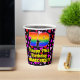 Este divertido y feliz diseño de taza de papel de cumpleaños presenta un gran número "79" con un patrón inspirado en el gradiente del espectro arcoiris. También incluye el mensaje "Feliz cumpleaños número 79", y un nombre editable. El fondo presenta un patrón de formas cardíacas rosadas, rojas y violetas. Copas de papel alegres y alegres como esta pueden ser divertidas de usar en una celebración de cumpleaños/fiesta que se celebra para celebrar el cumpleaños 79 de alguien. [~Z0000548]