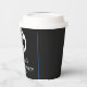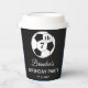7th Birthday party for a soccer fan, sports, kids, boys, for him. Black and white, modern, elegant Birthday party paper cups. Please personalize it with your details.