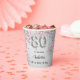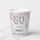 Para una glamorosa y niñita para una fiesta de cumpleaños número 80. Un fondo falso plateado. En el frente y en la parte posterior: Personalice y agregue un nombre y una fecha. Decorada con polvo de purpurina rosa y de plata falsa. El número 80 se escribe con un tipo de letra de estilo globo.