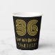 El diseño de esta copa de papel inspirado en el estilo de los años 20-30 tiene un aspecto vintage y de cumpleaños con un gran toque de estilo Art Déco inspirado en el número "86", además del mensaje de bienvenida de cumpleaños "Feliz cumpleaños 86" y un nombre editable. El fondo es negro de color. Las tazas de papel temáticas de cumpleaños como esta pueden ser usadas en una fiesta de cumpleaños que celebra el cumpleaños 86 de alguien. [~Z0000546]