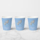 90 cumpleaños vasos de papel azul y plata. Perfecto para una familia que está organizando un fiesta para un padre o un abuelo que cumple noventa años. En este diseño moderno y elegante también se ofrecen invitaciones, servilletas y carteles de juego.