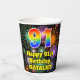 Este alegre y divertido diseño de taza de papel con temática de cumpleaños presenta un gran número "91" con un patrón inspirado en el gradiente del espectro arcoiris, junto con el mensaje "Feliz cumpleaños 91", y un nombre personalizado. El fondo presenta un patrón multicolor inspirado en fuegos artificiales de celebración. Coloridas y vibrantes tazas de papel como esta pueden ser divertidas de tener en una celebración/fiesta de cumpleaños que se celebra para honrar el noventa primer cumpleaños de alguien. [~Z0000539]