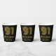 This 1920s-1930s style inspired and vintage style birthday-themed paper cup design features a large art deco inspired look number “91”, plus the birthday greeting message “Happy 91st Birthday,” and a custom name. The background is colored black. Paper cups like this might be used at a birthday party held in celebration of somebody’s 91st birthday. [~Z0000546]