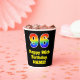Este divertido y colorido diseño de taza de papel de cumpleaños presenta un gran número "96" con un patrón inspirado en el gradiente del espectro del arco iris, junto con el mensaje "Feliz cumpleaños 96", y un nombre personalizado. También tiene un fondo de color negro. Coloridas y vibrantes tazas de papel como esta pueden ser divertidas de tener en una fiesta de cumpleaños que se lleva a cabo para honrar el cumpleaños número noventa de alguien. [~Z0000537]