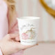 An elegant baby shower paper cup designed with pink and white watercolor pumpkins. Most lettering is editable - click the "Customize Further" button to edit. Matching items in our store Cava party design