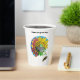 This joyful sunflower mandala includes three different kinds of sunflowers. The petals from chocolate, strawberry, and golden yellow sunflowers create one sunflower shape. The sunflower head includes different color floret patterns. The last quarter of the face shows ripe kernels, dropping sunflower seeds, while a new sunflower seedling sprouts from the earth. The hopeful image symbolizes the cycles of plant life and rejuvenation. It will perk up your day!