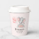 Diseño de Vasos para Baby Shower con con Tematica de un hermoso elefante con globos rosas en acuarela , ideal para que tu fiesta de baby shower. Se puede personalizar con el nombre de tu bebe.