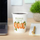 Nuestra pequeña calabaza está convirtiendo un elegante tema de calabaza de cascadas de primera cumpleaños en tazas de papel fiesta para tu fiesta de primer cumpleaños. Este diseño presenta calabazas de otoño de color naranja y verde con hojas de otoño y flores de color rosa y naranja. Explore la colección de fiestas de cumpleaños completa. Colección perfecta para fiestas con tema de otoño.