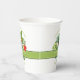 Colorida taza de papel boda con un marco horizontal, verde primavera bordeado por flores de hibisco de color acuático, un tocan audaz y hojas de palma exuberantes. El fondo blanco es opcional y se puede cambiar si se prefiere. Este diseño tropical es perfecto para el verano, la playa y los bodas tropicales, los cumpleaños y otros eventos. Busque ID577 para ver productos coincidentes.