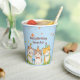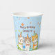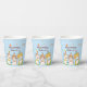 Celebrate your little one's special day with this charming, customizable paper cups ! Featuring three cute cartoon kittens wearing colorful party hats and festive bow ties, this design is perfect for a cat-themed birthday party. The soft blue background is accented with bright confetti, making it a delightful addition to any first birthday celebration. Easily personalize the text with your child's name and age for a truly unique party experience.