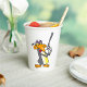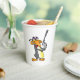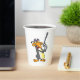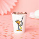 Un pingüino vestido de agente secreto sostiene una pistola. Este diseño parece realmente efectivo en estas tazas de papel