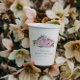 Tazas de papel personalizadas para despedida de soltera con aguada en acuarela floral de lavanda y rosa