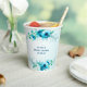 Tema de Despedida de Soltera Algo Azul Antes de Hacerlo - Copas de Papel Personalizadas para Despedida de Soltera con Flores Azules en Acuarela.
