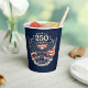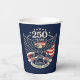 Brindar por la historia con estos vasos de papel premium de 250 Años de Independencia Americana. Diseñados para la celebración definitiva del Semiquincentenario de 2026, este diseño presenta un Águila Calva audaz, la icónica Campana de la Libertad y el lema "E Pluribus Unum" contra un fondo clásico azul marino.