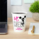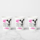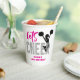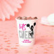 ¡Vamos a alentar! Alegres tazas de fiesta de cumpleaños en rosa, purpurina plateado y negro.