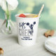 ¡Vamos a alentar! Alegres tazas de cumpleaños en purpurina plateado y azul marino.