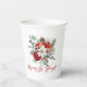 Flores acuarelas modernas y manzanas rojas, tazas de papel fiesta Navidad con tipografía roja personalizado. Elegante y alegre ambiente festivo.