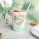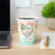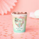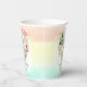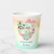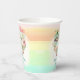 Verano tropical tazas de papel fiesta de estilo hawaiano con colores pastel, con un corazón tropical con vistas a la playa, flamencos y flores con un fondo de color arcoiris. Personaliza fácilmente el texto. - Kate Eden Art