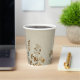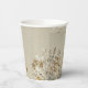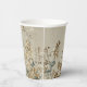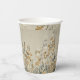 This paper cup features an ethereal, meadow-inspired landscape rendered in a delicate watercolor style. Stems of wildflowers and clover-like foliage stretch upward against a warm linen-textured background, creating a tactile, fabric-like appearance.